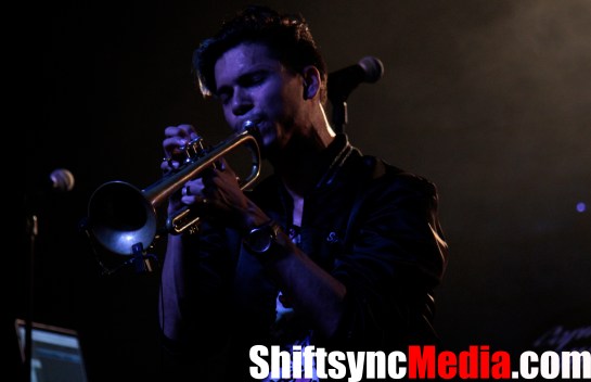 Trumpet player for Capital Cities Spencer Ludwig playing his horn for a captavated audience at the Ace Of Spades in Sacramento, CA